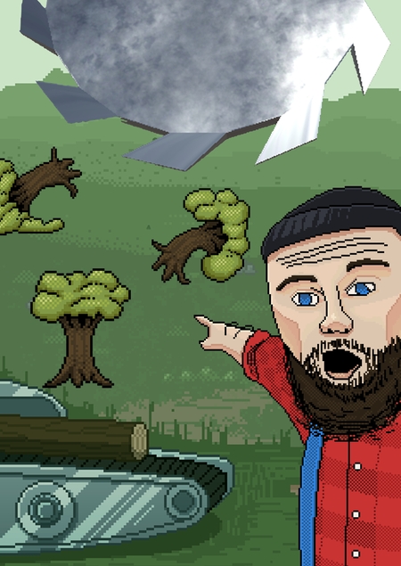 Берите пило-пушку в руки и рубите деревья, пока они не убежали!