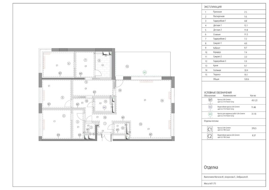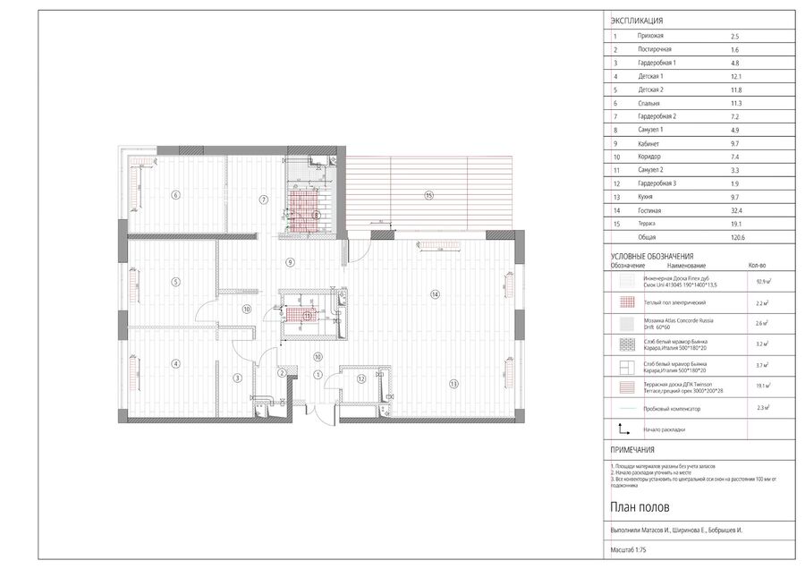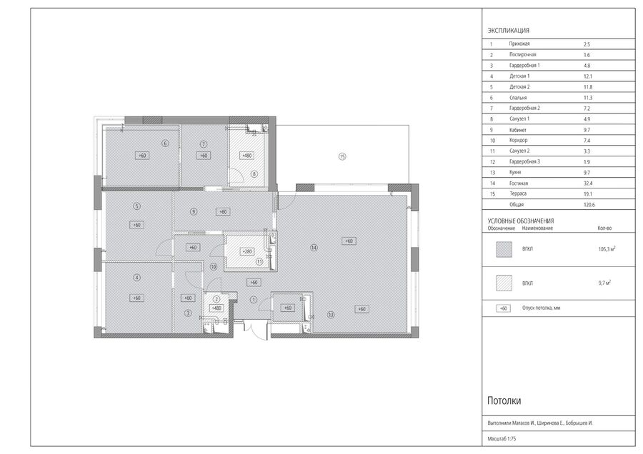 Просторная квартира с террасой для семьи. Пространство квартиры делится на две основные зоны: приватную часть со спальнями для членов семьи, и социальную — единое пространство кухни-гостиной с выходом на террасу. Соединяет две зоны кабинет. Для акцента в интерьере использовали винтаж, нестандартную, с интересными деталями и функциональную мебель.