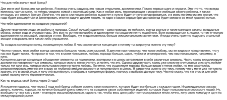 Далее я попросила определить целевую аудиторию исходя из интервью и концепции бренда