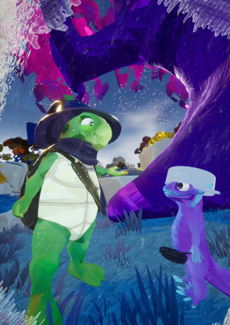 A fairy tale game about the turtle witch Daisy with exploration of a magical world full of living mushrooms, giant bees and a huge forest with a grandfather dinosaur.