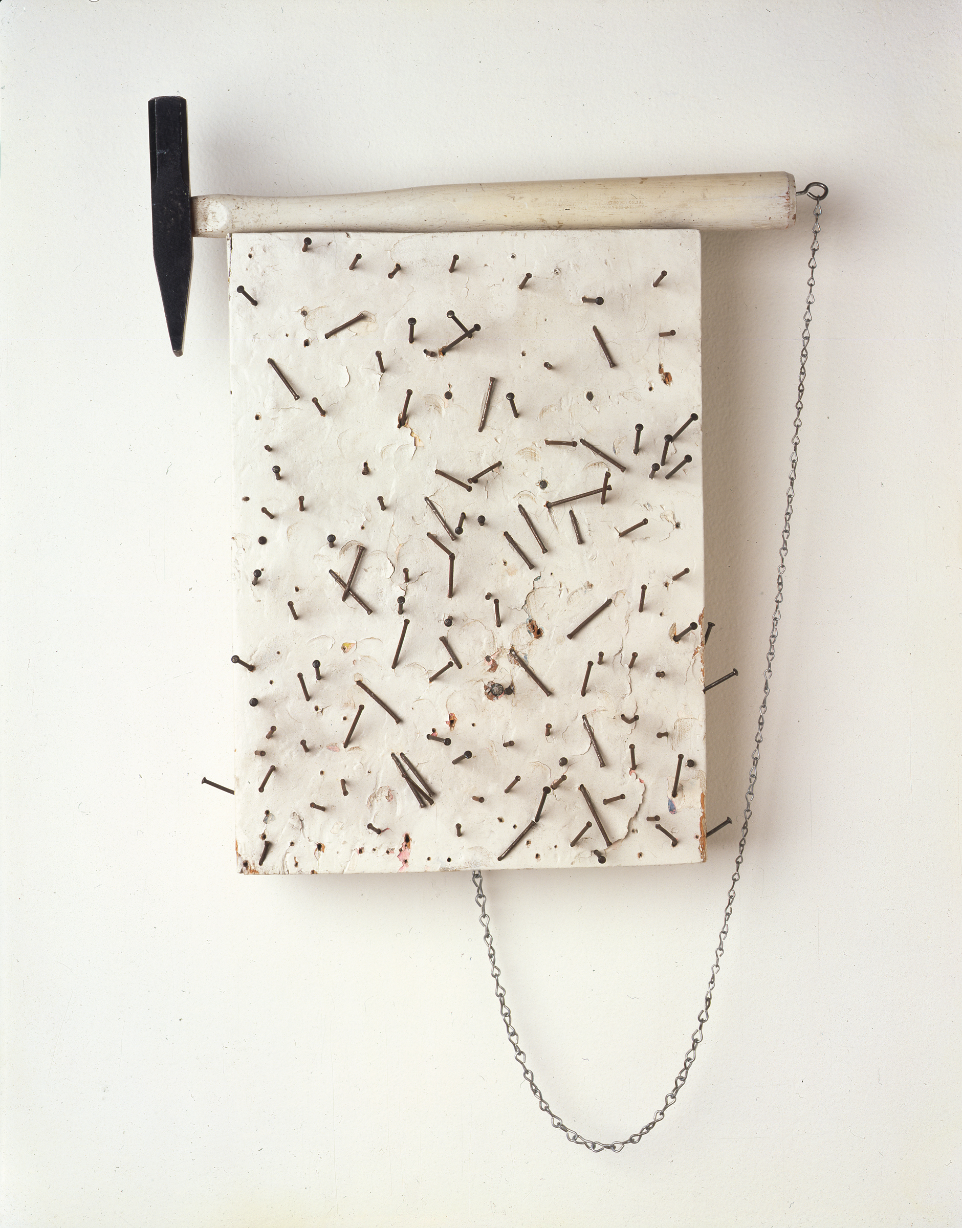 Слева: Йоко Оно. Картина, на которую нужно наступить, 1960–1961 гг.; справа: Йоко Оно. Картина, чтобы забить гвоздь, 1966