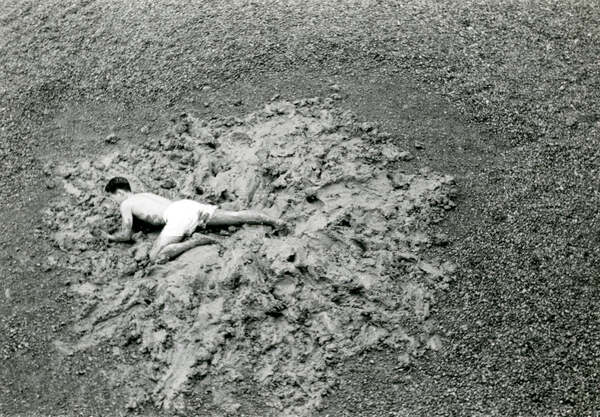 В 1955 году Кацуо Ширага представляет «перформативную картину» «Трудная грязь» («Challenging Mud»), в котором художник боролся в одиночку в куче грязи на Первой художественной выставке Гутаи в токийском зале Охара Кайкан. Это произведение, в моем понимании, является максимальным расширением поля живописи действия, которая полностью вышла в открытое трехмерное пространство. К тому же, трансформация происходит и с результатом перформанса, так как это уже не картина, а объект, который может быть выставлен в галерее.