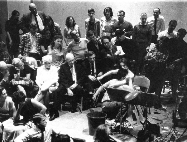 Важной фигурой, оказавшей влияние на становление перформанса как отдельного жанра, был Джон Кейдж. Арсений Жиляев в одной из своих лекций отметил, что его «Театральная пьеса № 1» (1952) стала первым произведением, которое назвали перформансом. Это был ассамбляж определенных действий, который совершали разные художники (что очень роднит, на мой взгляд, произведение Кейджа с представлениями футуристов или дадаистов) в столовой колледжа Блэк-Маунтин. «Театральная пьеса № 1» практически никак не была задокументирована. Она осталась в воссозданных схемах и воспоминаниях участников и зрителей.