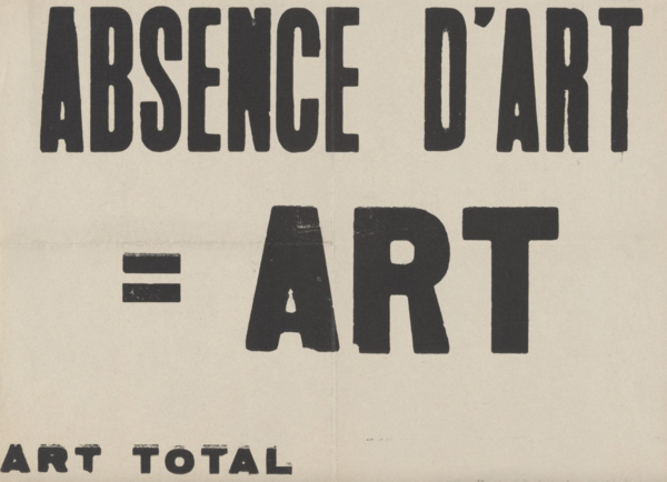 Слева: Манифест Флюксуса, 1963; справа: Бен Вотье. Absence d’art = art (No Art = Art), 1964