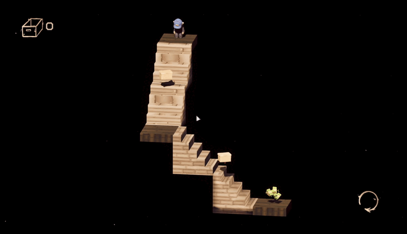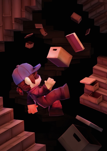 Цель — выстроить маршрут из лестниц так, чтобы донести достаточное количество коробок и не попасться тем, кто прячется среди них.