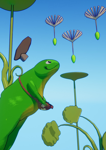 Тяжела жизнь лягушек-цветушек! Вот по Парящим островам вновь буря прошлась, и семечки-парашютики — еще невылупившиеся лягушата-цветушата — разлетелись по всему архипелагу!