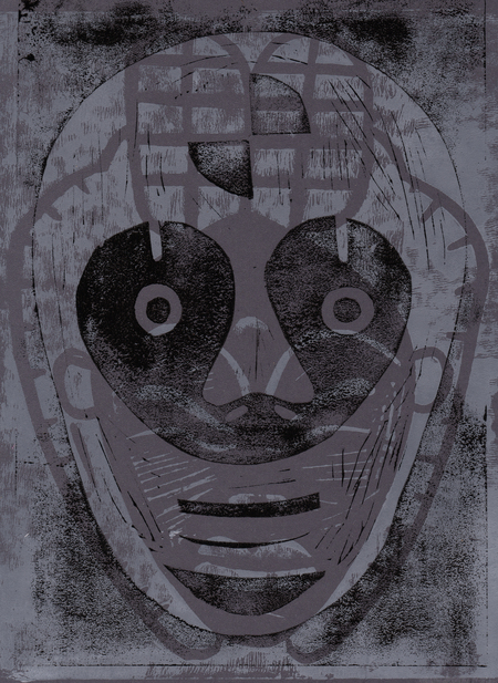 Африканские маски/Линогравюра/ Материал и размер: Бамага цветная Folia A4 300г, серый антрацит, акрил