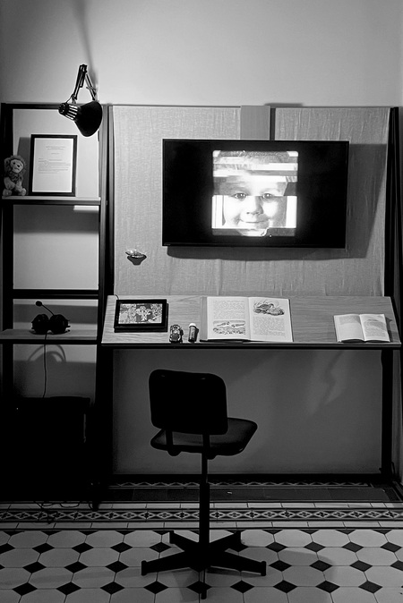Нейрочадо Интерактивная инсталляция Нейросетевая генерация речи и изображения, видеоарт, артефакты семьи. 2024 г.