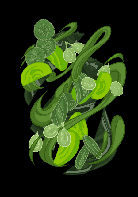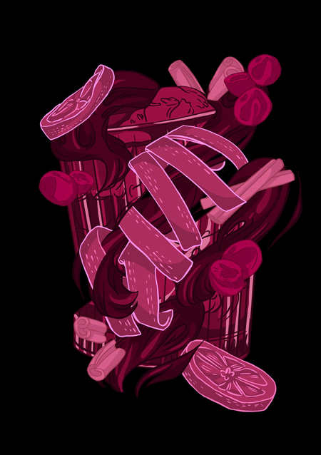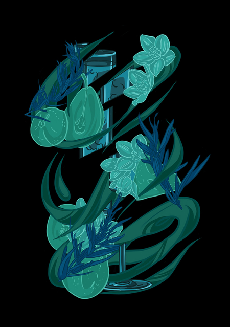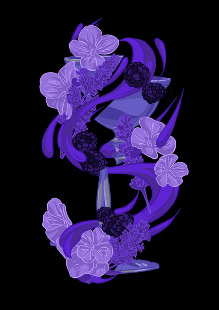Серия из 13 иллюстраций для бара ASTRO BAR, где коктейли раскрывают характер знаков зодиака. Каждый бокал разрезан или расколот, а из него словно вылетают ингредиенты — фрукты, ягоды, специи и цветы — которые символизируют индивидуальность знака.
