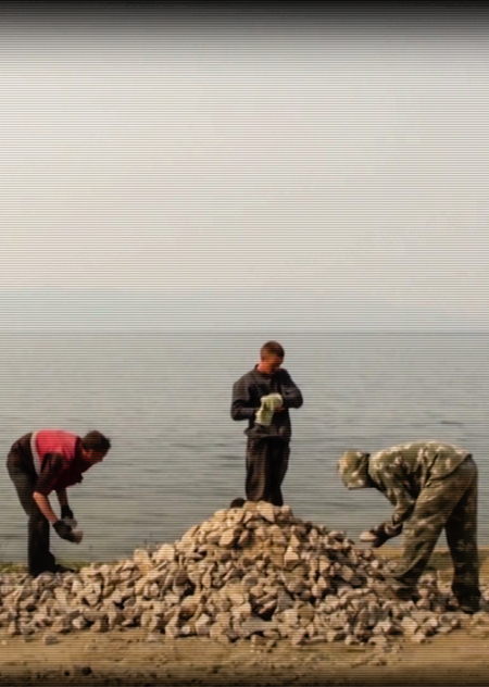 Время разбрасывать камни, двухканальная видео инсталляция, 2014