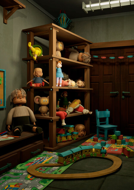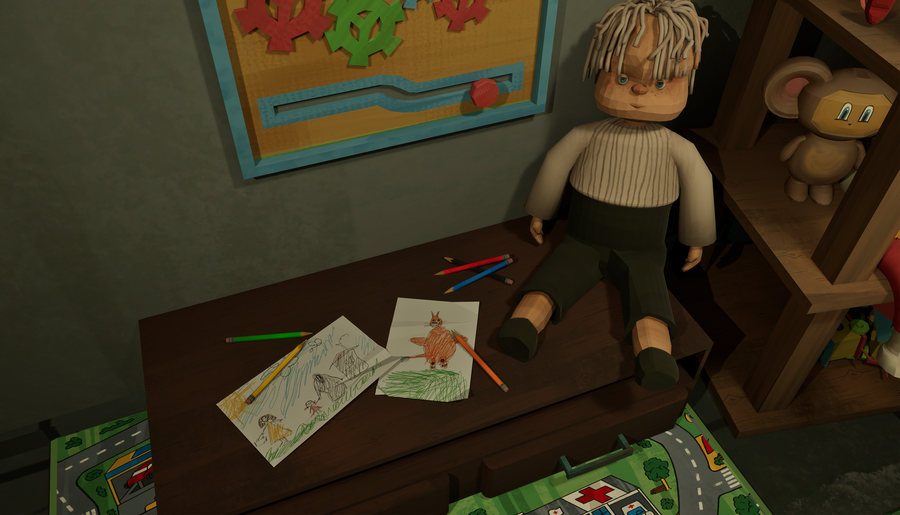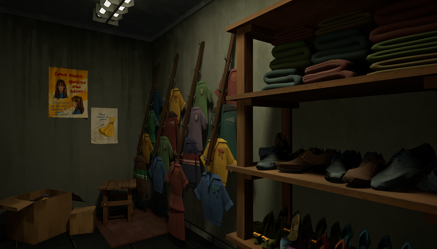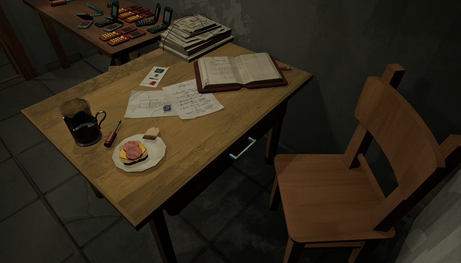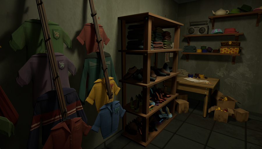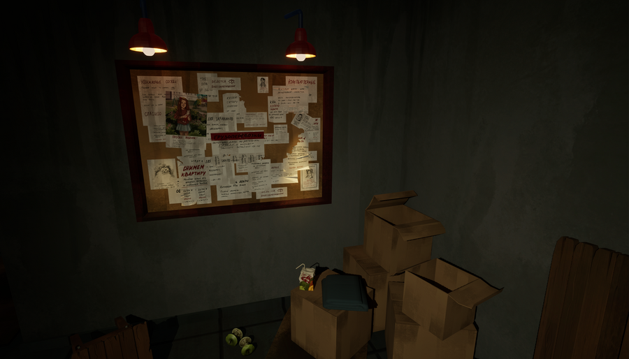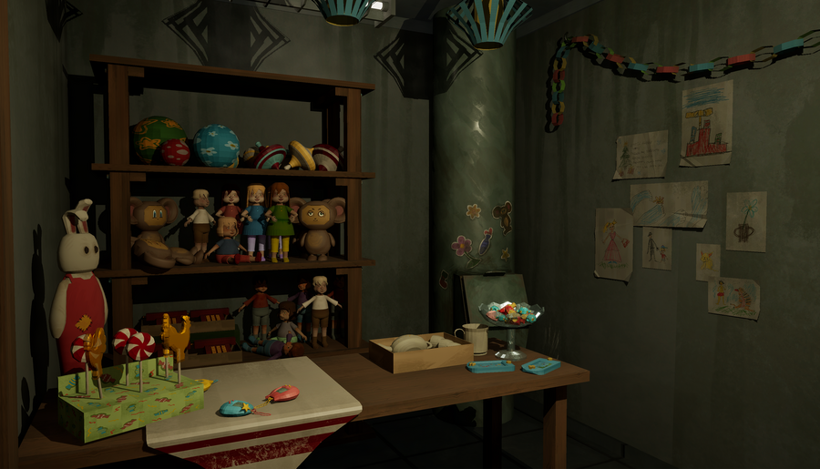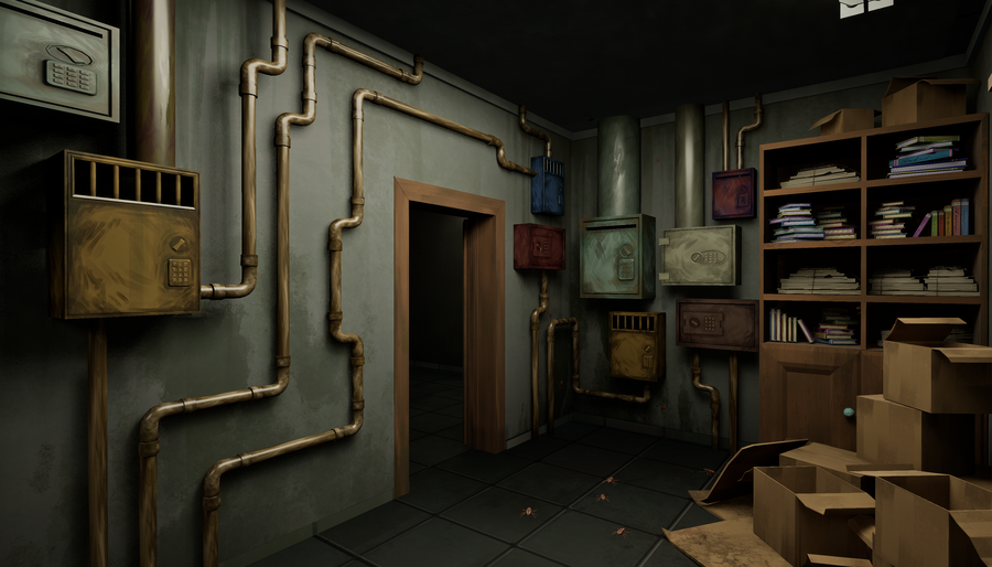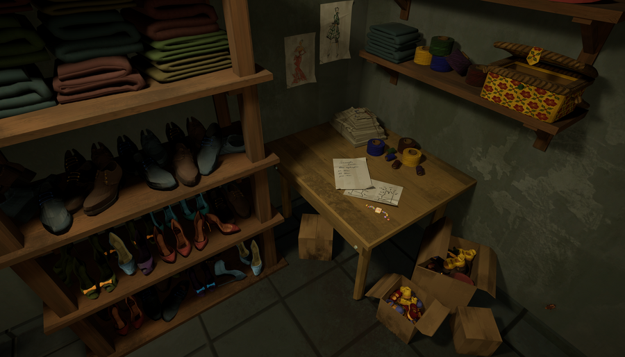 Interactive location for first-person video games with investigative elements.