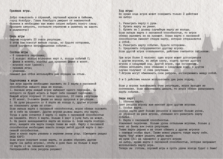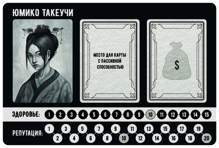 Вначале игры каждый игрок получает 10 очков здоровья, 10 очков репутации и 20 монет из банка.