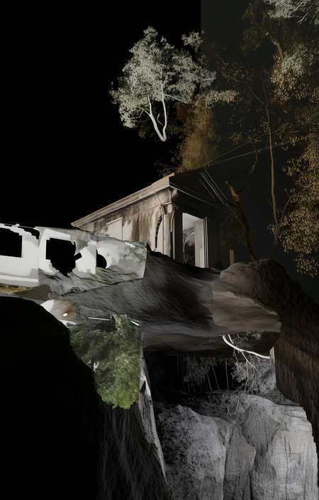 2. Инсталляция — двучастная инсталляция из аутентичной гравюры и механической конструкции. с одной стороны — бур разрушает камень, с другой — создает его же экструдером.