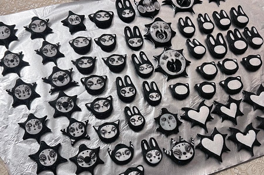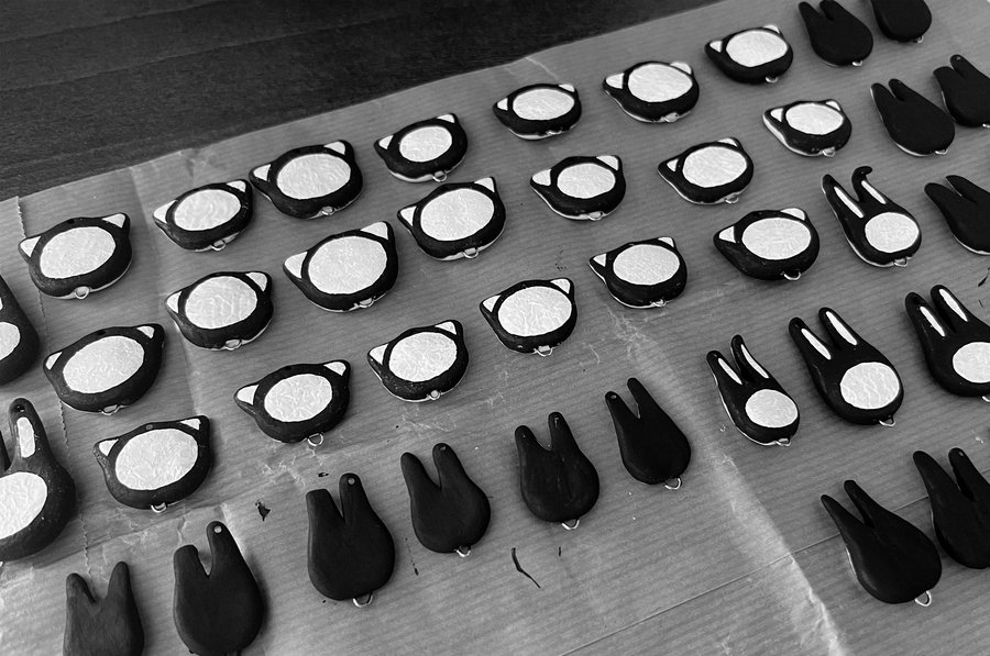 Core of the Jewelry: The foundation of the jewelry consists of pendants with expressive character images employing a simple, concise color palette of black and white. The exclusive use of these two colors in creating all clay pieces establishes stylistic unity while allowing for diversity in shapes and painting.
