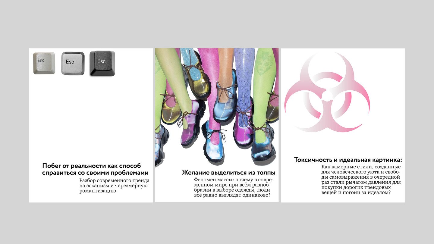 Наша задача — собирать, анализировать и объяснять суть быстро возникающих микростилей, а также связанные с ними темы, чтобы понять логику современной визуальной культуры.