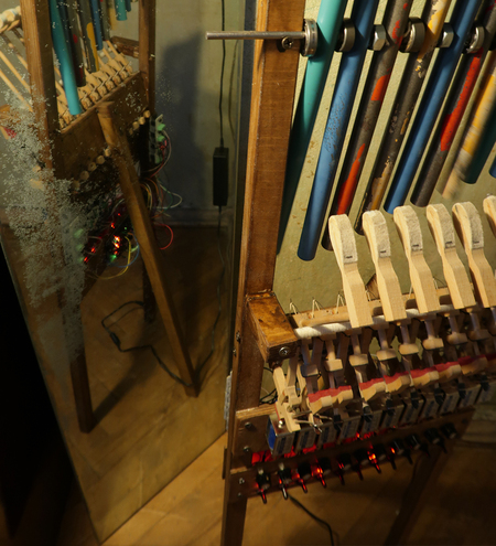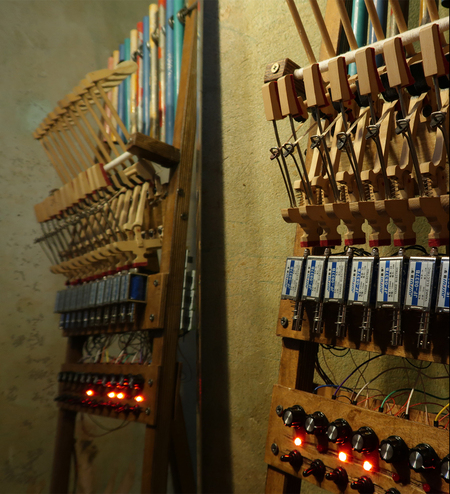 Исполнитель задает независимый параметр времени для каждого из 11 голосов, соответствующих отдельной ноте. Каждый молоточек срабатывает со своей скоростью, постоянно догоняя и перегоняя друг друга.