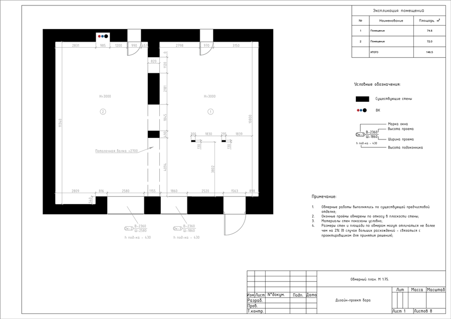 2. Исходные данные Тип здания: старое кирпичное здание. Общая площадь помещения: 146,5 кв. м. Высота потолков: 3,0 м.