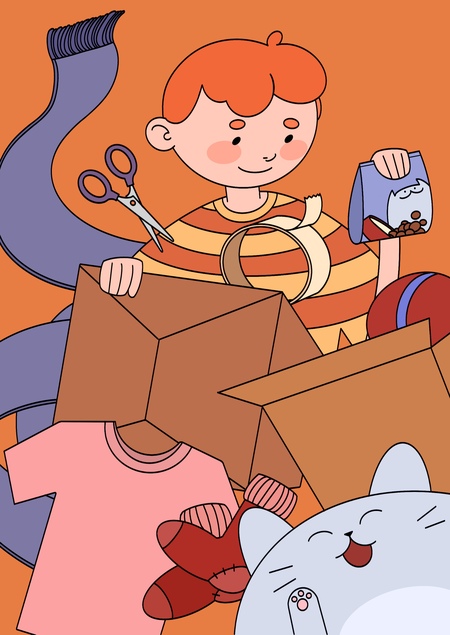 Ваш котенок голоден! Но вы не можете добраться до него. Упакуйте коробки для переезда, чтобы можно было убрать их и пройти. Нужно найти 4 предмета для каждого блока из 4-х коробок.