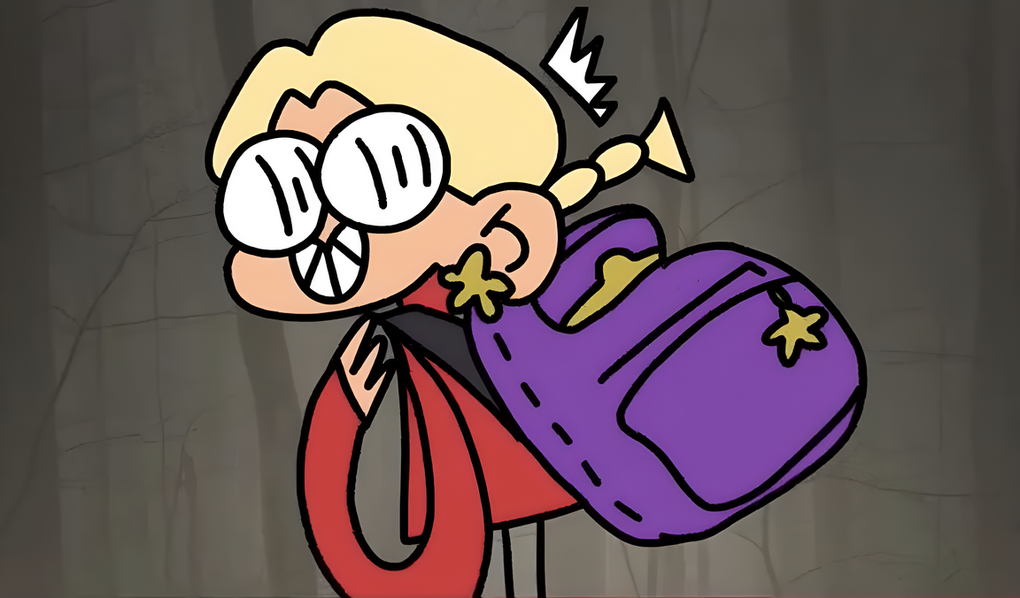 ПРОМПТ: A colorful lilac backpack with a nature-themed design featuring various flowers and a prominent star. The backpack is set against a background that appears to be a wooden room or cabin, with elements like a ladder and leafy decor. The atmosphere is warm and slightly whimsical, giving the impression of an inviting and cozy space.