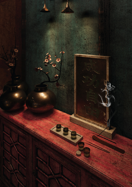 Дизайн-проект отеля «Тибет». Отель расположен в тибетских горах и предназначен для проведения ретритов. Забывая про повседневную жизнь, люди приезжают сюда ради духовной трансформации, держат аскезу, медитируют и следуют наставлениям учителей. Дизайн отеля выдержан в соответствующем китайском стиле, здесь есть все, что нужно для проведения ретритов.