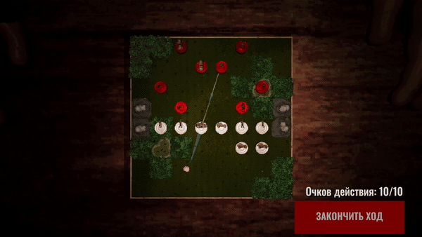 Перед началом раунда игрок формирует тактику, разыгрывая шашки с особыми механиками и расставляя их на поле.