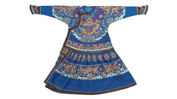 Слева: Чаопао императрицы, династия Цин, правление Цяньлун (1736−1796) Справа: Мужской чаопао, династия Цин (1644–1912), правление Канси (1661–1722)