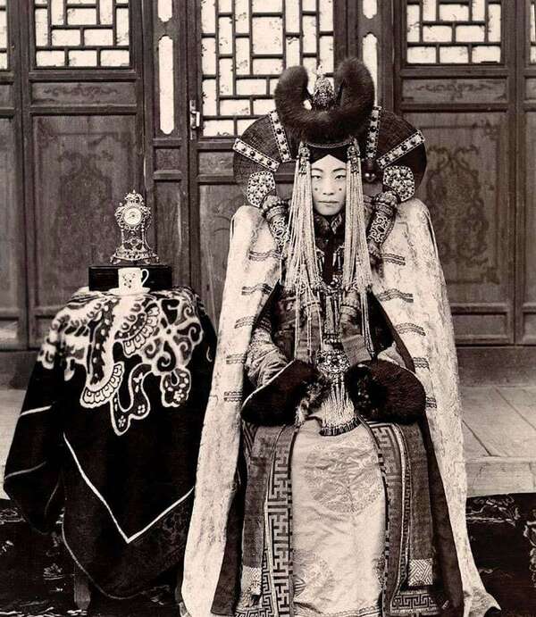 Слева: промо-фотография Падме Амидалы в платье сенатора, 1997-1998 Справа: монгольская дворянка из халха, 1908 год
