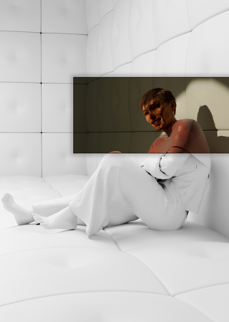 создание эмоционального состояния героя производилось за счет переноса данных через камеру Face ID или при помощи ручного изменения вертаксов через ключевые положения (shape keys)
