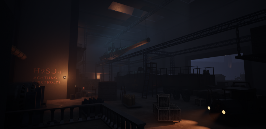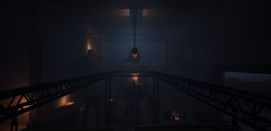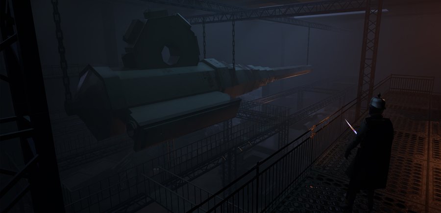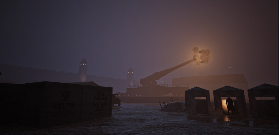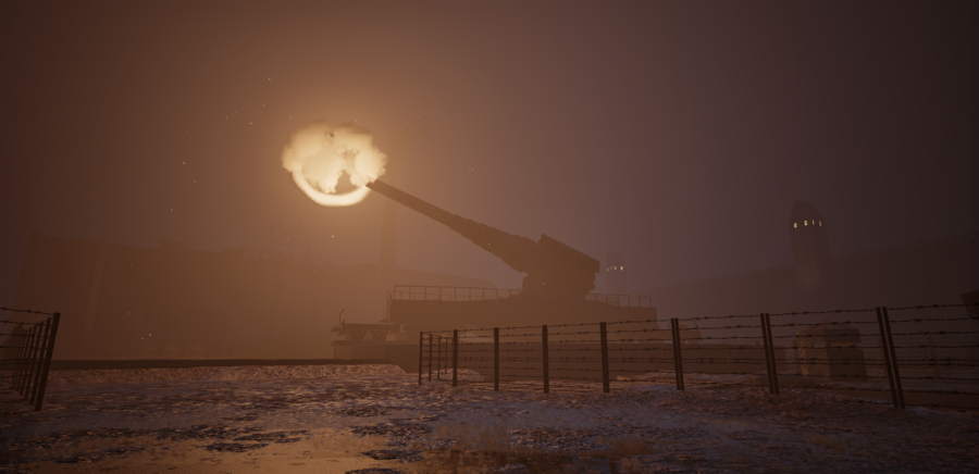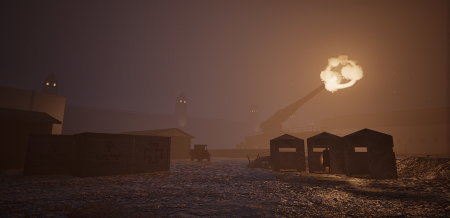 A major feature of the level was the huge Siegfried rail weapon. The gun shoots every few seconds, lighting up everything, at which point the player is well visible to the patrol.