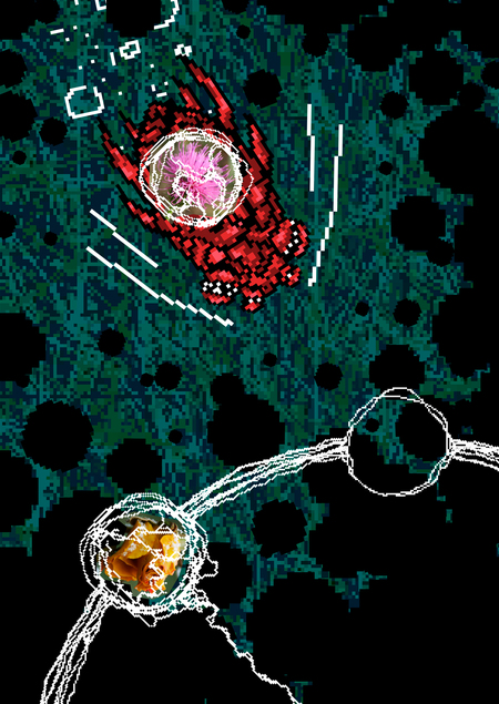 Ritual circle and artifacts are visible over the dark, limiting the player’s field of view. This attracts attention and separates them from the environment.