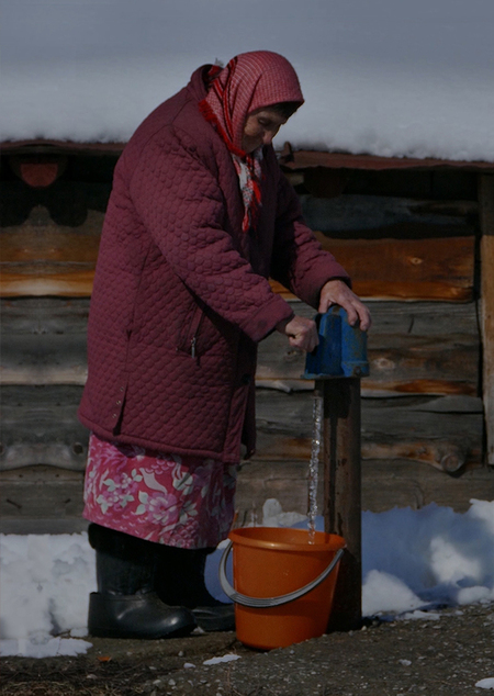 Вода, наряду с землей, воздухом и огнем — одна из четырех стихий, четырех основополагающих элементов Вселенной. В многоканальной видео инсталляции Aqua Viva вода, льющаяся из колонок, превращается в символ вечной животворности, а персонажи, набираюшие воду, обретают иконную образность. Их условная статичность и неподвижность подчеркивают пульсацию искрящейся на солнце водной струи.