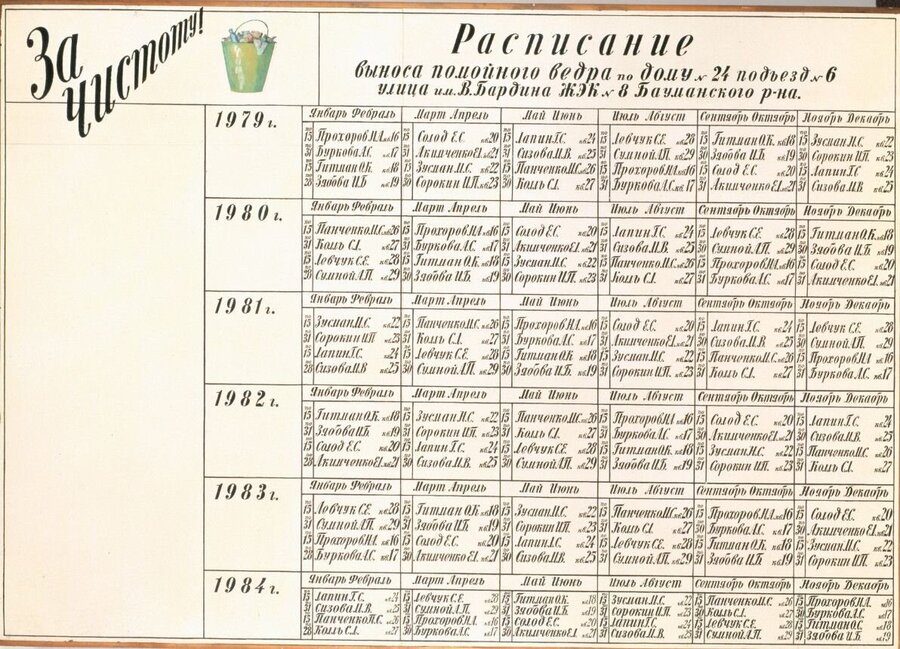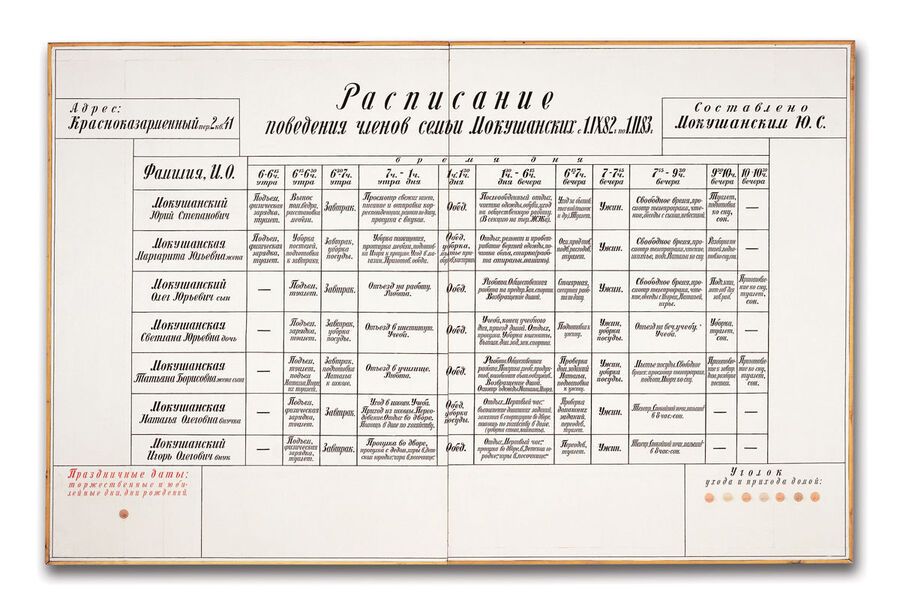 И. Кабаков, «Расписание поведения членов семьи Мокушанских», 1983 / «Расписание выноса помойного ведра», 1980