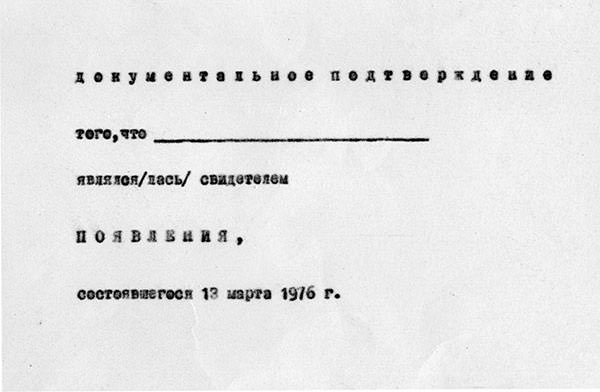 Авторы, по примеру западных коллег, тоже задаются вопросом самоидентификации искусства и парадоксальности этого перфоманса. Они также иронизируют над бюрократией в СССР, оформляя документ в соответствии с официальным стилем и запечатляя этой справкой такое простое действие, как посещение акции.