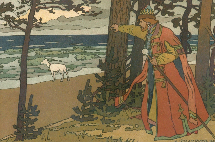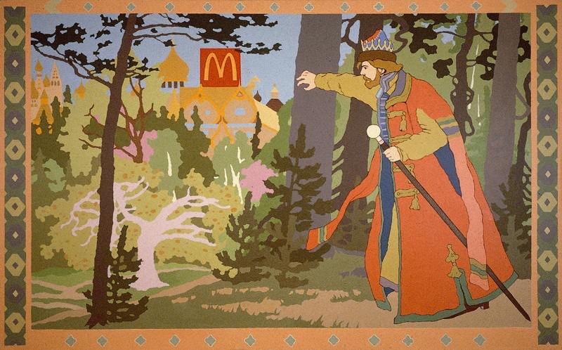 Александр Косолапов. «Царь-McDonalds», 1991 / И. Билибин. Иллюстрации к «Аленушка и братец ее Иванушка», 1905