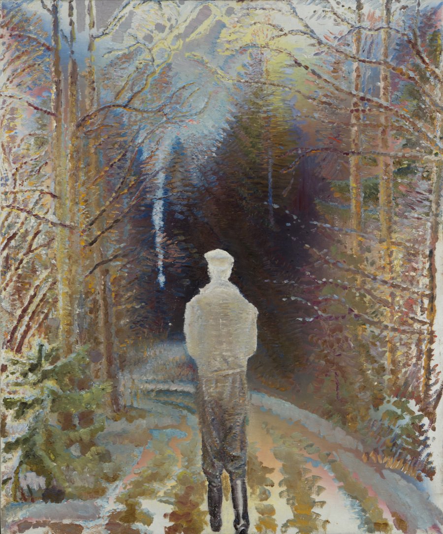 Тему памяти поднимает и художник Олег Васильев, однако в его творчестве она предстает не как источник грусти или приятной ностальгии. В его триптихе «Прогулка» видно, как обыкновенный лесной пейзаж постепенно трансформируется в абстрактное пространство, где лишь отдельные детали напоминают об оригинальной картине. Возникает ощущение, что это «воспоминание» постепенно тускнеет — этого эффекта художник достигает с помощью инверсии цвета и снижения детализации. На третьей картине фигура человека исчезает, оставляя лишь тёмное пространство со следами былого пейзажа. О. Васильев стремится передать ощущение, когда с течением времени детали исчезают из памяти, но само воспоминание еще живо.