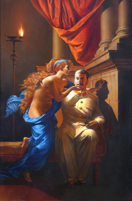 Комар и Меламид тоже иронизируют над советской властью. В картинах «Ленин ловит такси в Нью-Йорке» и «Происхождение социалистического реализма» художники помещают образы вождей в абсурдные обстоятельства.