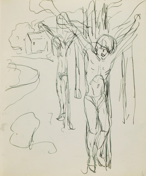 (1) — Эдвард Мунк. Распятие на пляже, 1928–1930 гг. (2) — Эдвард Мунк. Пустой крест и другие зарисовки, 1899–1900 гг. фрагмет.