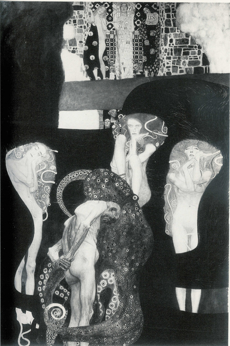(1) — Гюстав Моро. Явление. Саломея и голова Иоанна Крестителя, 1877 г. (2) Густав Климт. Юриспруденция, 1907 г.