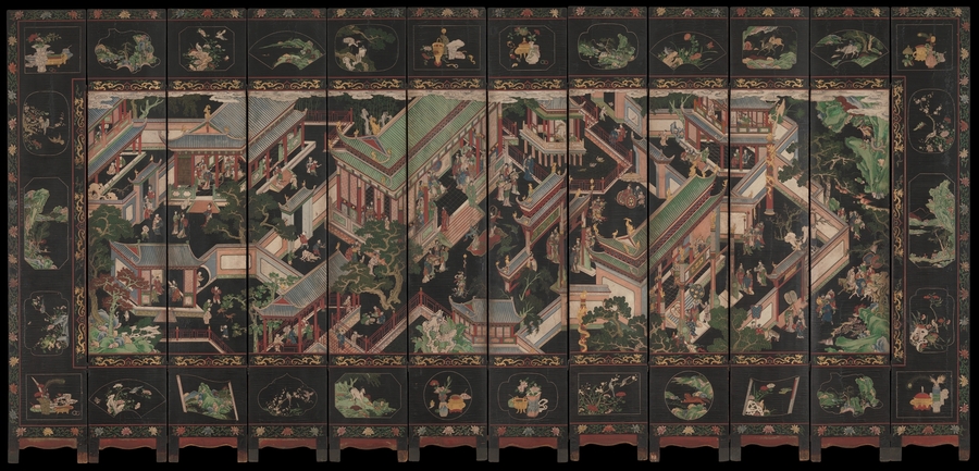 Дворцовая сцена. Датируется 1689–1690 годами. Китай. Четырехстворчатая складная ширма. Около 1780 г. Франция.