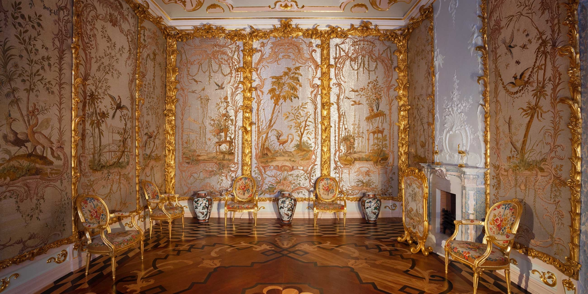 Китайский кабинет. Дворец Монплезир. 1714–1723 годы. Россия. Стеклярусный кабинет. Китайский дворец в Ораниенбауме. 1762–1768 годы. Россия.