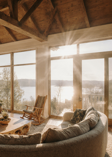 - Возраст 35–55 лет - Семейное положение: в браке, 1 ребенок - Доход: высокий - Ищет спокойствие, качественное время с семьёй и восполнение жизненной энергии - Ценит истории вещей и натуральных материалов - Имеет желание создать уединённое место для отдыха, творчества или удалённой работы, времени с семьёй - Любит природные виды — дом на берегу, панорамные окна, открывающие пейзаж - Предпочитает тёплые палитры, текстуры дерева, камня, льна, керамики - Ценит функциональность и комфорт: продуманная планировка, тёплый камин или печь, солнечные веранды и места для приёма гостей - Наличие летних террас и зон для приёма пищи на свежем воздухе.