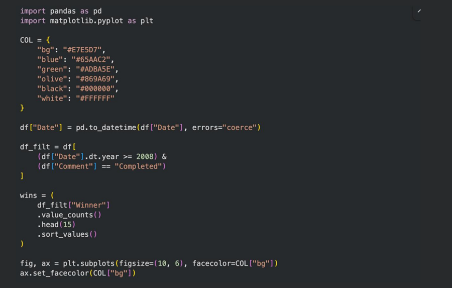 В качестве основы был использован датасет ATP Tennis Data , собранный с платформы Kaggle и охватывающий период с 2008 по 2022 год. Эти данные были самыми свежими из предложенных. Теннис тех лет имеет особую эстетику для меня, так как именно там собраны все культовые спортсмены этого вида спорта. В наборе данных представлены сведения о матчах, игроках, количестве побед, коэффициентах ставок, а также игровых характеристиках спортсменов.