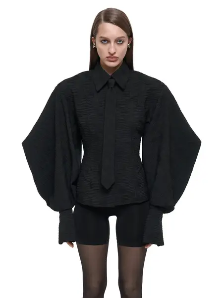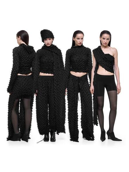 Вдохновленная урбанистической архитектурой Токио и внутренним напряжением между женской грацией и опасной точностью формы, SHE становится SHI — элегантной, но острой. Гладкие ткани превращаются в шипы, а силуэт становится тоньше. Каждая вещь — конструкция. Каждый образ — вызов.