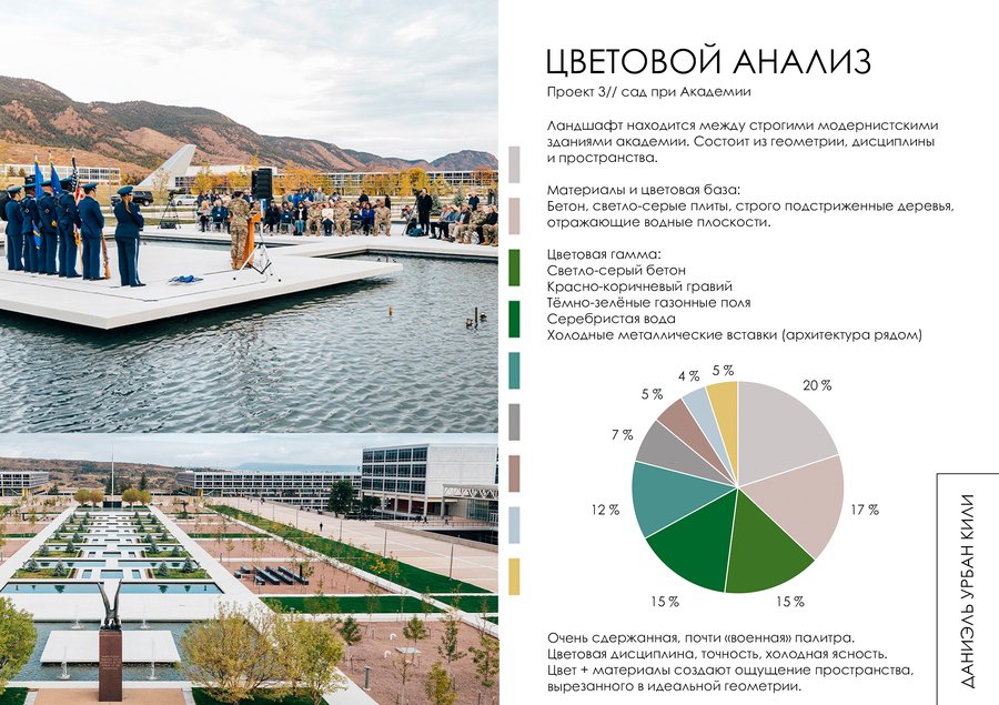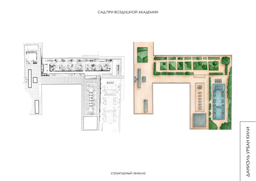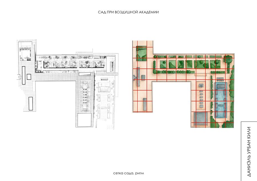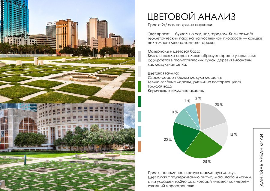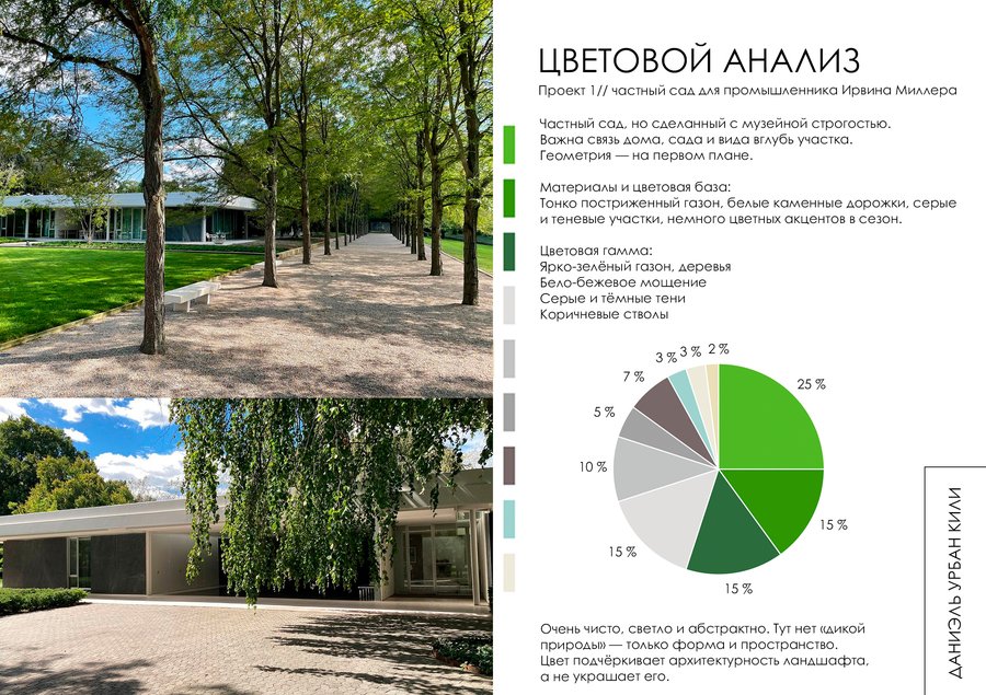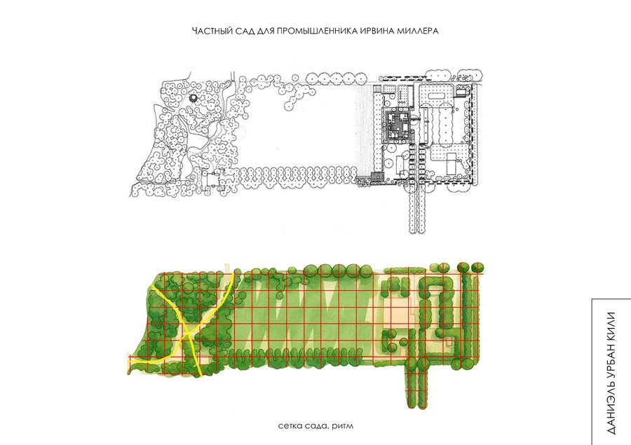 Данный сад вдохновлён принципами ландшафтного архитектора Даниэля Урбана Кили: строгая геометрия, ясная структура и ритм пространства формируют спокойное, созерцательное место. Лабиринт, водная ось и регулярные ряды деревьев переосмыслены в моём собственном проекте, создавая современный сад-переживание, основанный на идеях порядка, тишины и внутреннего пути.