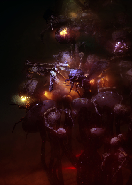 Чудовищный город населяют гигантские насекомые, похожие на людей самым неожиданным образом и отличающиеся изощренным аппетитом.