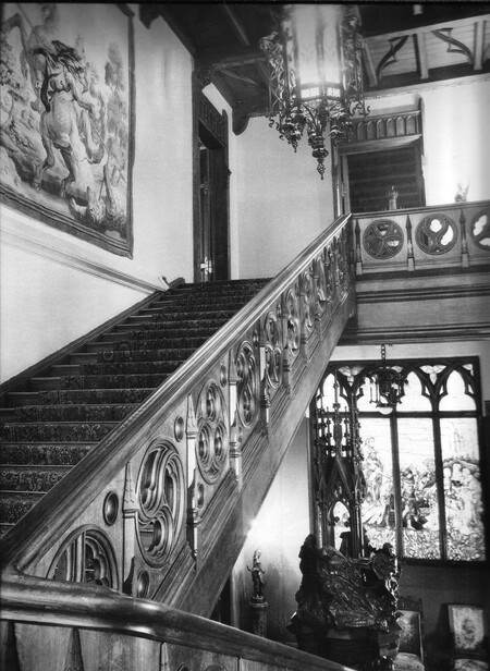 В 1898 году Михаил Александрович Врубель получил заказ на создание художественного оформления парадной лестницы неоготического особняка Зинаиды Григорьевны Морозовой в Москве. Центральным элементом его работы стала скульптурная композиция «Роберт и монахини», которую художник создал, вдохновившись сюжетом из знаменитой оперы «Роберт-дьявол» Джакомо Мейербера. Врубель, демонстрируя мастерское соединение стилей и символических мотивов, тонко вписал эту композицию в пространство лестничного холла, придя к убедительному художественному диалогу между архитектурой и пластикой. Скульптурная группа исполнена с чрезвычайным вниманием к деталям, каждая фигура обладает выразительной пластикой и насыщена драматизмом, что добавляет образам внутренней динамики и психологической напряжённости. Расположение композиции не случайно — она доминировала в интерьере, задавая тон всему пространству, а динамика движения фигур и их взаимодействие способствовали формированию особого эмоционального климата, характерного для искусства Серебряного века. Врубель умело интегрировал скульптурную композицию в структуру лестницы, благодаря чему архитектурные элементы и декоративное оформление пространства оказались взаимосвязаны и подчёркивали гармонию общей художественной концепции.