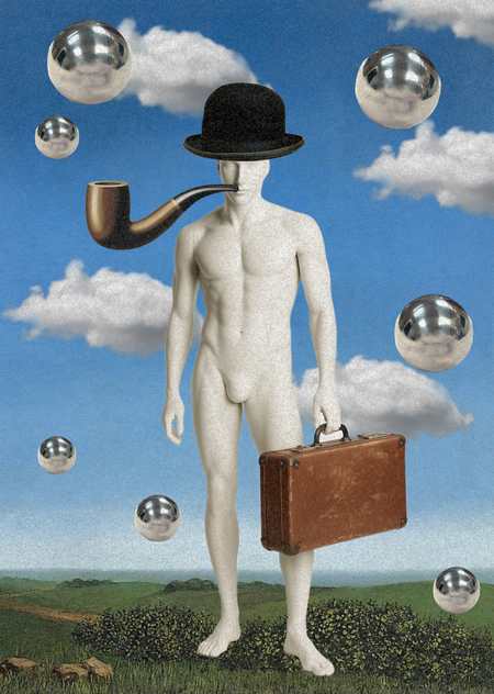 У Магритта много раз появляется один и тот же герой — мужчина в пальто и котелке. Исследователи пишут, что в Бельгии начала XX века котелок был обычной шляпой городского «среднего класса». Поэтому персонаж выглядит как самый обычный прохожий. Художник специально делает его таким, чтобы он не был похож на конкретного человека. Это скорее обобщённый образ, маска. Зрители часто говорят, что это «любой человек», а не портрет.