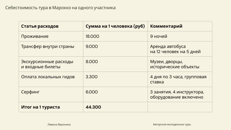 При проведении двух туров в месяц проект полностью окупает стартовые затраты уже во второй месяц работы и далее выходит на стабильную прибыль