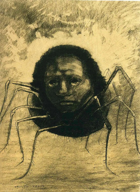 «Плачущий паук» (1881). Характерный стиль Редона: большие натуралистичные глаза.