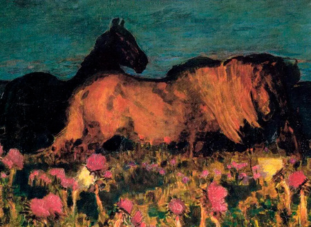 Однако «цветной» период Редона более занимателен с точки зрения общих постулатов и тем, распространенных как в символизме западном, так и русском: яркие контрастные цвета, схематичные очертания, взаимосвязь задних планов с героями картин, их непосредственный синтез.